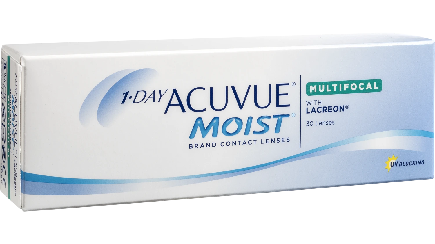 1 Day Acuvue Moist Multifocaal zijn zachte daglenzen die je tot 10 uur lang kunt dragen en zijn gemaakt van Hydrogel. Hydrogel lenzen hebben een hoog watergehalte, hierdoor voelen ze zacht aan op de ogen. Heb je gevoelige ogen? Dan zijn hydrogel lenzen de juiste keuze voor jou. 1 Day Acuvue Moist Multifocaal zijn multifocale lenzen. Dit houdt in dat de lenzen twee sterktes bevatten, zodat je zowel dichtbij als veraf scherp ziet. In één doosje 1 Day Acuvue Moist Multifocaal zitten 30 lenzen.