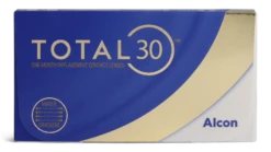 Total 30 zijn zachte maandlenzen die je tot 10 uur lang kunt dragen en zijn gemaakt van Silicone Hydrogel. Silicone Hydrogel lenzen laten zo veel mogelijk zuurstof door, dit voorkomt irritatie en droge ogen. Lenzen van dit materiaal zijn gezonder voor je ogen, hebben een hoog draagcomfort en voelen zelfs na lang dragen nog prettig aan. Total 30 zijn sferische lenzen. Dit zijn de meest voorkomende lenzen en corrigeren bijziendheid (min-sterkte) of verziendheid (plus-sterkte). In één doosje Total 30 zitten 3 lenzen.